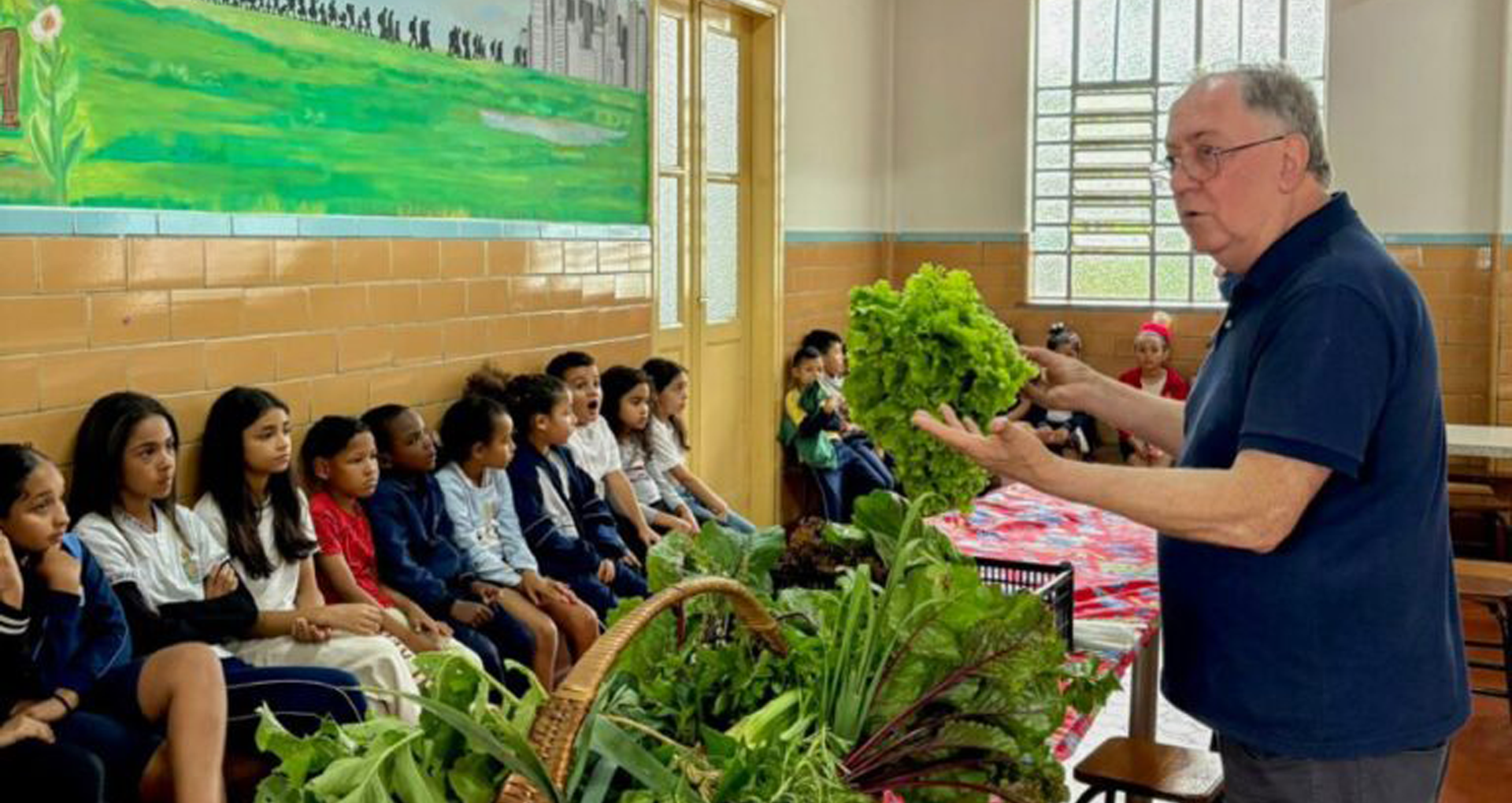 Durante a atividade, crianças atendidas pelo Instituto participaram de oficinas educativas voltadas ao cultivo e à diversidade dos alimentos da horta do ICC, além de reflexões sobre a importância de uma alimentação equilibrada.
