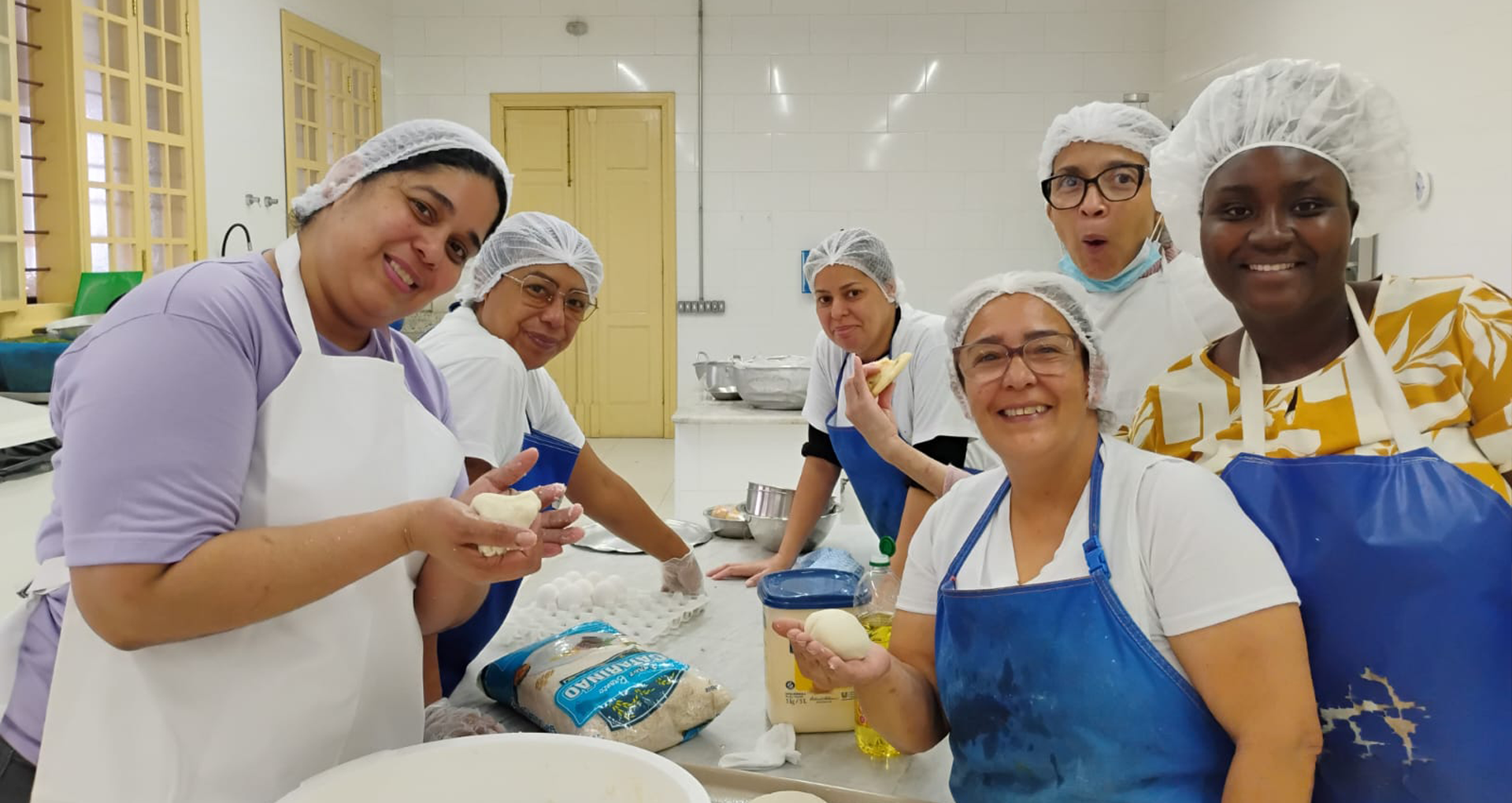 Além disso, o Instituto convidou famílias haitianas e venezuelanas para um dia de convivência na cozinha da instituição. Durante o encontro, as famílias compartilharam modos de preparo, receitas e histórias, promovendo a integração e o respeito à diversidade alimentar e cultural presentes no território.